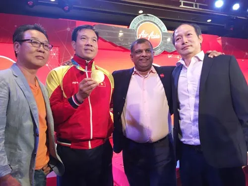 Ông Tony Fernandes (thứ 2 từ phải sang) và VĐV Hoàng Xuân Vinh.