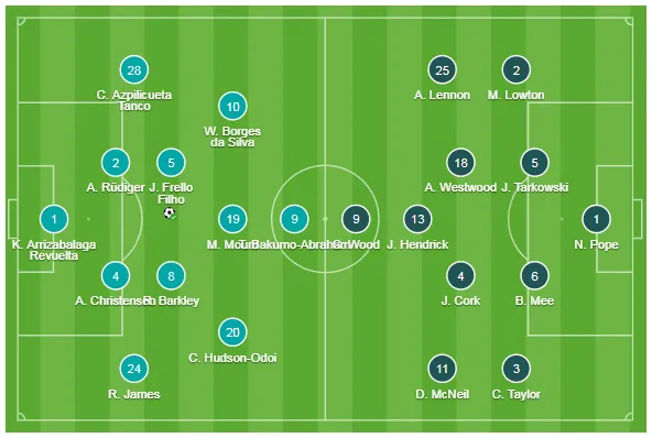 1-0 Phút 27, trọng tài thởi phạt đền khi Willian bị đốn ngã trong khu cấm và Jorginho đã hạ gục thủ thành đội khách trên chấm 11m.
