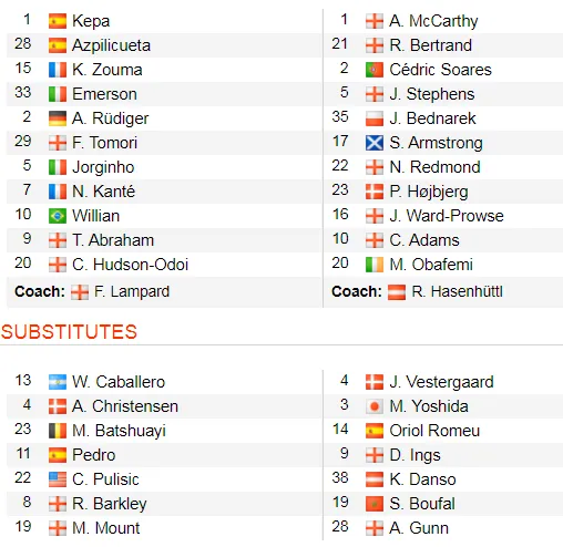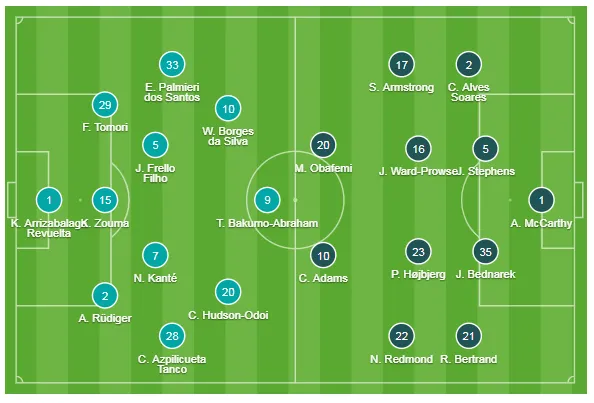 HLV Frank Lampard đã tung đội hình mạnh nhất với Willian, Odoi và Tammy Abraham trên hàng công nhưng áp lực họ tạo ra chưa đủ để Southampton lo lắng.