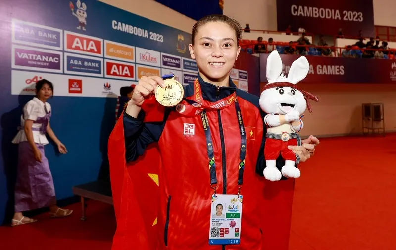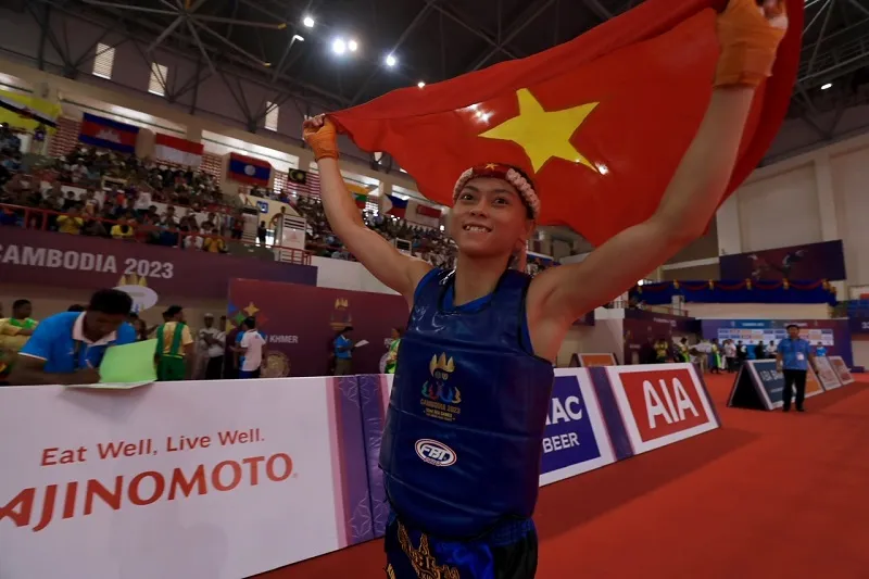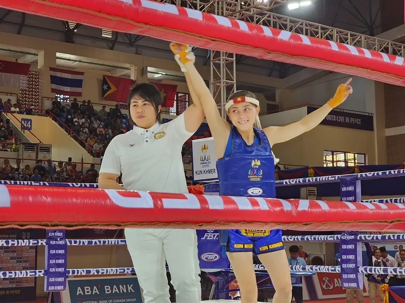 Nữ võ sĩ của Việt Nam có lẽ là người may mắn đáng kể bởi chỉ thi đấu một trận mà giành luôn tấm HCV ở SEA Games 32.