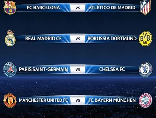 Vào lúc 18 giờ hôm nay, 21-3, (theo giờ Việt Nam) tại Nyon, Thụy Sĩ, Liên đoàn bóng đá châu Âu (UEFA) tiến hành lễ bốc thăm chia cặp vòng tứ kết Champions League mùa giải 2013-14. Tám đội bóng có mặt ở vòng tứ kết năm nay gồm có các đại điện đến từ nước Anh: Manchester United, Chelsea; đại diện đến từ Tây Ban Nha: Real Madrid, Barcelona, Atletico; đại diện đến từ Đức: Bayern, Dortmund và duy nhất 1 đại diện đến từ Pháp: PSG.