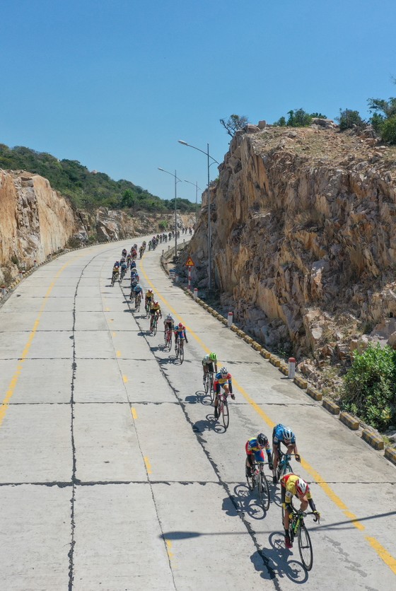 Tay đua Phan Tuấn Vũ một mình cán đỉnh Vĩnh Hy đầu tiên. Ảnh: H.H Sau khi đổ đèo Vĩnh Hy, các tay đua lại tấn công liên tiếp tạo thành tốp đầu với khoảng 9 tay đua hướng về đích ở Thành phố Phan Rang-Tháp Chàm. Các tay đua này thay nhau tấn công tìm cơ hội thắng chặng, cuối cùng Nguyễn Huỳnh Đăng Khoa (Tập đoàn Lộc Trời) tung nước rút đúng thời điểm, cán đích đầu tiên, lần đầu tận hưởng niềm vui chiến thắng ở Cúp truyền hình TP.HCM HTV-Tôn Đông Á. Tay đua Nguyễn Minh Thiện (620 Châu Thới Vĩnh Long) về hạng nhì và Trần Thanh Điền (Vinama TP.HCM) về hạng ba.