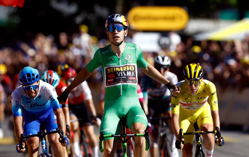 “Tôi rất hạnh phúc khi giành được nhiều điểm áo xanh ở chặng này. Đội Jumbo-Visma đã dốc sức bắt lại những tay đua đã thoát đi và nhiệm vụ của tôi là phải chiến thắng. Tôi chọn đeo sát Tadej Pogacar trước khi tung đòn quyết định”, Wout van Aert chia sẻ.