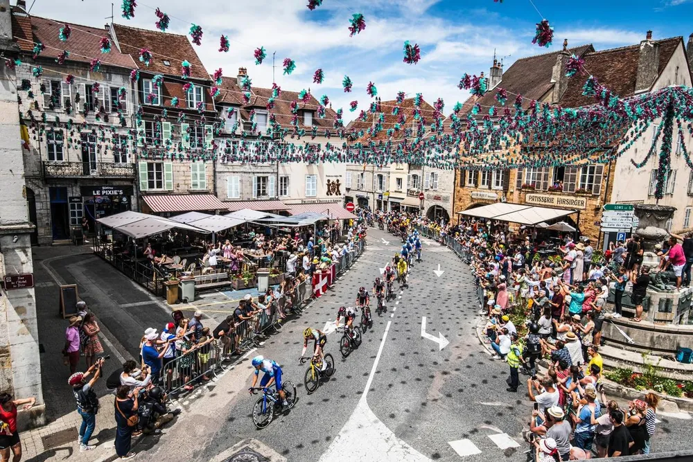 Sau xuất phát, 3 tay đua Mattia Cattaneo (Quick-Step Alpha Vinyl), Fred Wright (Bahrain-Victorious) và Fredrik Frisson (Lotto Soudal) được thả đi với khoảng cách có khi lên hơn 3 phút. Ở phía sau, một tai nạn dính chùm đã xảy ra, có cả áo vàng Tadej Pogacar, nhưng may mắn không ai bị thương nặng nên đều có thể trở lại với chặng đua.