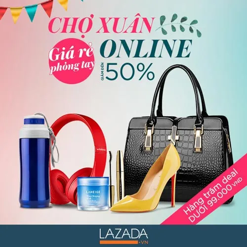 Trang mua sắm trực tuyến Lazada.vn triển khai chương trình “Chợ xuân online” từ 23-2 đến 26-2-2016, với phiên chợ sáng 0 - 12 giờ, phiên chợ chiều 12 - 18 giờ, phiên chợ đêm 18 - 24 giờ với nhiều sản phẩm mới, mặt hàng bán chạy và đồng giá dưới 99.000 đồng. Dịp này, người tiêu dùng còn được nhận mã giảm giá xuất hiện ngẫu nhiên vào các khung giờ trong phiên chợ.