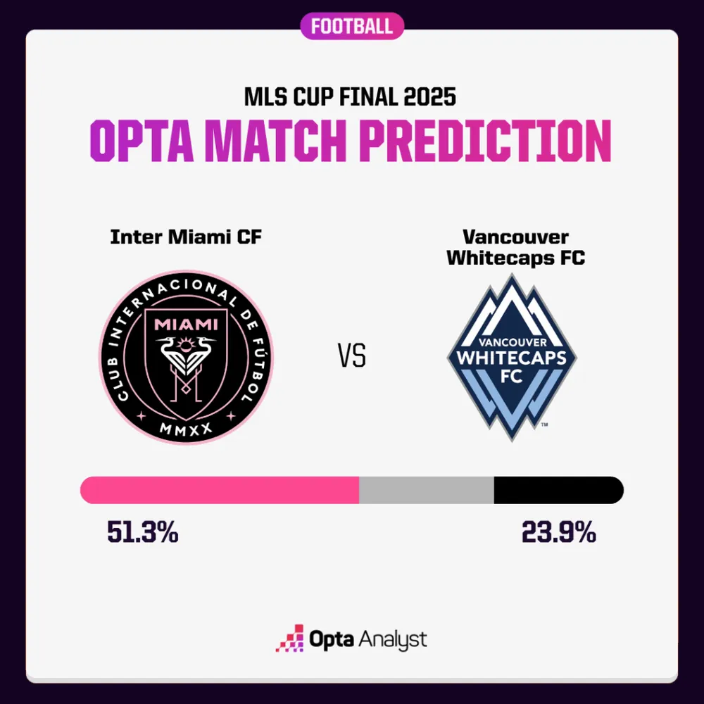 Inter Miami được đánh giá cao hơn với 51.3% cơ hội thắng sau 90 phút theo siêu máy tính Opta. Tuy nhiên, Vancouver Whitecaps mang theo tâm lý lợi thế khi đã hai lần đánh bại Miami (tổng tỷ số 5-1) ở bán kết CONCACAF Champions Cup đầu năm. Đó cũng là hai lần duy nhất Messi đối đầu Vancouver.
