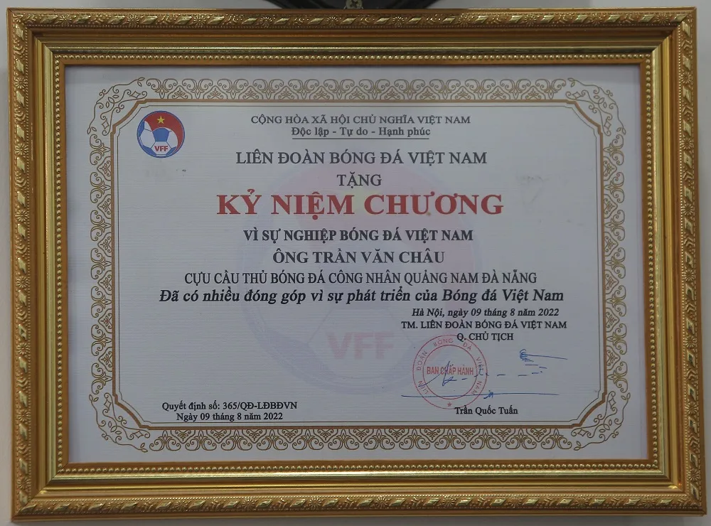 Đi cùng Ban tổ chức chương trình có ông Bùi Xuân Hòa - Ủy viên HĐQT Công ty VPF; ông Trần Vũ, đại diện Chi hội cựu cầu thủ bóng đá Đà Nẵng – người đã kết nối cựu cầu thủ Trần Văn Châu với Ban tổ chức chương trình. “Bóng đá ngày xưa thiếu thốn nhiều thứ lắm, không có huấn luyện viên dạy bài bản, không được ăn tập chỉn chu như ngày nay. Anh em khi ấy ra sân thi đấu chủ yếu là vì niềm đam mê, yêu nghề. Thủ môn Trần Văn Châu thuộc thế hệ đầu tiên của bóng đá Quảng Nam Đà Nẵng trong những ngày đầu thống nhất đất nước. Anh ấy như có tài năng bẩm sinh với sức bật tốt, phản xạ nhạy bén nên luôn tạo sự an tâm cho các anh em ở tuyến trên”, ông Trần Vũ nhớ lại.