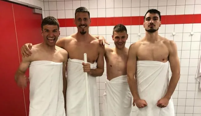 Cụ thể, sau chiến thắng trước Leverkusen ở bán kết, các cầu thủ Bayern mà nhất là 4 cầu thủ trên đã tỏ ra rất phấn khích. Họ đã… khỏa thân trong phòng tắm, chỉ dùng một chiếc khăn để che thân và chụp ảnh lưu niệm để ăn mừng. Bức ảnh này sau đó đã được đăng lên Twitter chính thức của Bayern Munich cùng dòng chú thích: “Cạn lời”.