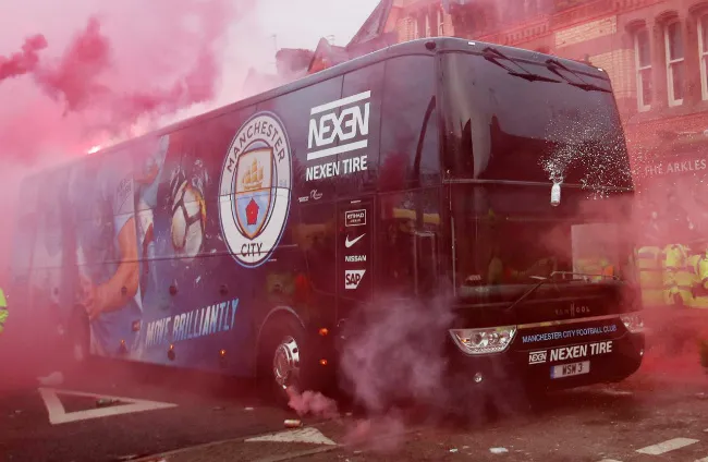 Hàng nghìn CĐV của Liverpool đã tập trung dọc các con phố để chào đón các cầu thủ Man.City bằng không khí thù địch trước trận đấu ấy. Nhiều CĐV quá khích đã ném pháo và chai lọ làm vỡ cả kính xe khiến các cầu thủ đội khách một phen hú vía. Sau đó, cảnh sát của vùng Merseyside đã có mặt kịp thời để ngăn chặn, xác minh thiệt hại và thu thập bằng chứng gửi về UEFA. Liverpool có thể sẽ bị phạt nặng vì hành vi này.