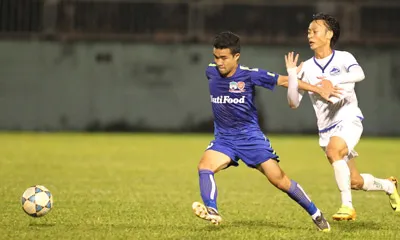 Chủ nhà HA.GL trong lần đá giao hữu cùng Phú Yên. Ảnh: Minh Trần