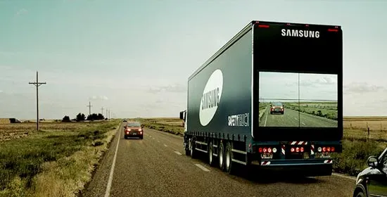 Trong đó, ý tưởng “Safety Truck” của Samsung ra đời như một giải pháp ngăn chặn tai nạn xe hơi ở Argentina - hiện được ứng dụng ở nhiều nước khác. Tại quốc gia có tỷ lệ tử vong cao do tai nạn xe hơi này, Samsung đã phát triển công nghệ giúp đường phố trở nên an toàn hơn. Một hệ thống được thiết kế dành cho các xe tải sử dụng 1 camera không dây ở phía trước và 4 màn hình ngoài trời ở phía sau để báo cho các tài xế đằng sau xe tải thấy rõ hơn con đường phía trước. Ý tưởng này đã đoạt được 2 giải Vàng hạng mục Digital (Kỹ thuật số) và Out of Home (Quảng cáo ngoài trời), và 3 giải bạc hạng mục Direct (Trực tiếp), Engagement/ Experiental (Gắn kết/ Trải nghiệm) và Innovative (Sáng tạo). Đầu tháng 6 vừa qua, chiến dịch “Safety Truck” cũng đã gây chú ý và thắng hàng loạt giải thưởng danh giá như 1 giải Bạch kim, 3 giải Vàng và 3 giải Bạc tại Giải thưởng Cannes Lions 2015.