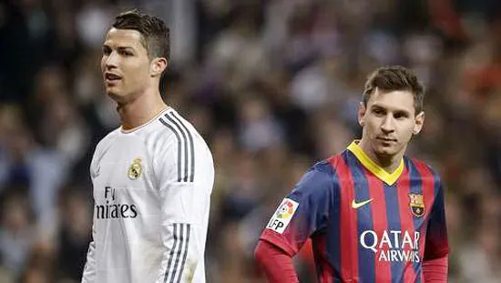 CR7 (trái, Real Madrid) và Lionel Messi (Barca).