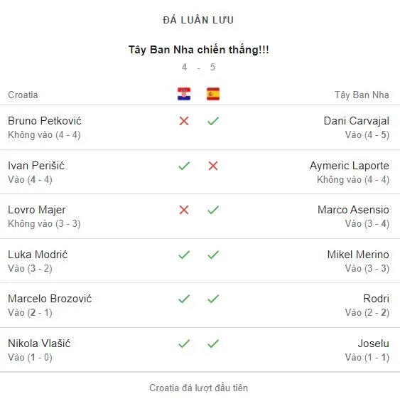 ⚽ Tỷ số penalty: Croatia 4-5 Tây Ban Nha
