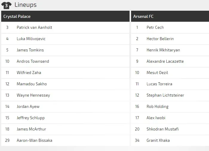 Crystal Palace tiếp đón Arsenal trên sân Selhurst Park trong trận derby chênh lệch nhất ở thành London. Thực tế là Pháo thủ tháng đến 9 trong 11 lần gặp Crystal Palace gần nhất và dường như đội chủ nhà không thể ngăn được Arsenal tìm kiếm trận thắng liên tiếp thứ 8 ở Premier League.