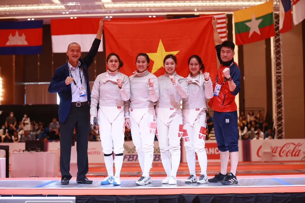 Các kiếm thủ Việt Nam lọt vào chung kết kiếm chém đồng đội nữ gặp đối thủ Philippines để tranh HCV. Ở trận đấu này Phùng Thị Khánh Linh, Phạm Thị Thu Hoài, Bùi Thị Thu Hà và Lê Minh Hằng đã chơi xuất sắc không cho đối thủ cơ hội vượt lên qua đó thắng chung cuộc bằng tổng tỉ số 45-37 để giành HCV. Đây là tấm HCV thứ 90 của Đoàn thể thao Việt Nam. Quan trọng hơn, nó là HCV đầu tiên của đội tuyển đấu kiếm tại SEA Games 32.