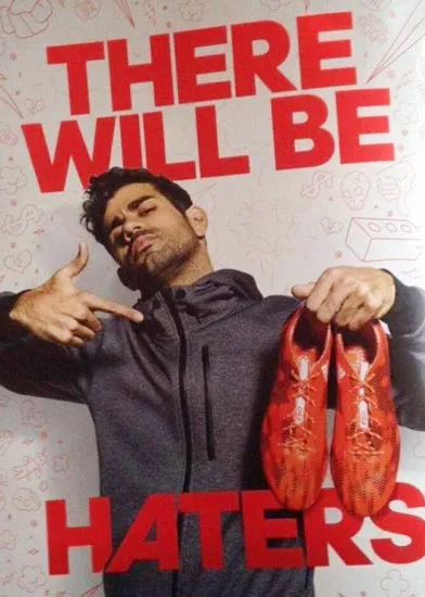 Nếu để ý, người ta sẽ thấy những dòng chữ quảng cáo cho chiến dịch quảng bá sản phẩm mới của adidas xuất hiện ở các bảng điện tử trên sân Stamford Bridge ở cuộc đối đầu giữa Chelsea và Liverpool ở Capital One Cup mới đây. Đó là chiến dịch mang tên: “There will be haters” ("Sẽ bị ganh ghét."). Nội dung các dòng chữ gồm: "Họ ghét cách bạn đi, họ ghét cách bạn nói, họ ghét dáng đứng của bạn, họ ghét cách bạn nổi bật, họ chỉ muốn đá bạn đi, và nếu họ thử làm điều đó, họ ghét việc họ thất bại. Họ ghét cách bạn ghi tất cả những bàn thắng. Họ ghét bạn giành chiến thắng, cách bạn ăn mừng bàn thắng, và ghét cách bạn giương cao chức vô địch. Họ ghét bạn vì bạn là cầu thủ xuất sắc nhất đường phố, nhất đội bóng, nhất sân vận động, đất nước và thế giới này."