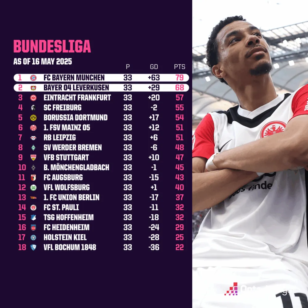 Ngày cuối cùng của giải đấu hàng đầu Đức diễn ra vào thứ Bảy hứa hẹn sẽ rất căng thẳng, đặc biệt là ở Freiburg. Bayern Munich và Bayer Leverkusen đã chắc chắn chiếm 2 trong 4 suất dự Champions League. Ba đội đang cạnh tranh cho 2 suất còn lại, và hai trong số đó sẽ đối đầu trực tiếp vào ngày cuối cùng, thứ Bảy.