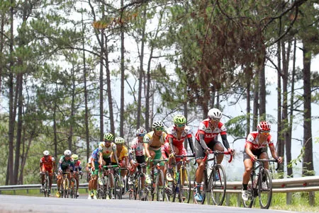 Các tay đua bước vào khu vực đèo Prenn. Ảnh: Hoàng Hùng