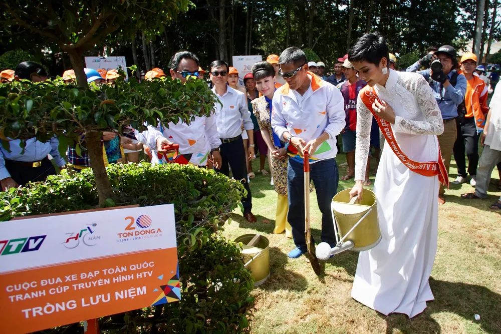 Bên cạnh đó, Hoa hậu Việt Nam H’hen Niê và nghệ sĩ hài Việt Hương cùng các thành viên trong đoàn đã tham gia trồng cây lưu niệm tại Mũi Càu Mau.