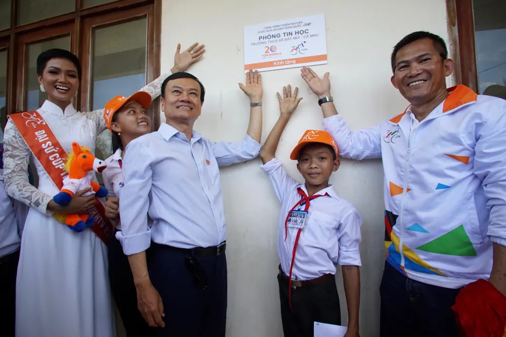 Nhân dịp đến với vùng cực Nam của Tổ quốc, ông Nguyễn Thanh Trung-Chủ tịch HĐQT kiêm Tổng Giám đốc Công ty CP Tôn Đông Á, nhà tài trợ chính của giải cùng BTC trao chứng nhận tài trợ xây phòng tin học cho trường THCS xã Đất Mũi (Cà Mau) trị giá 200 triệu đồng.