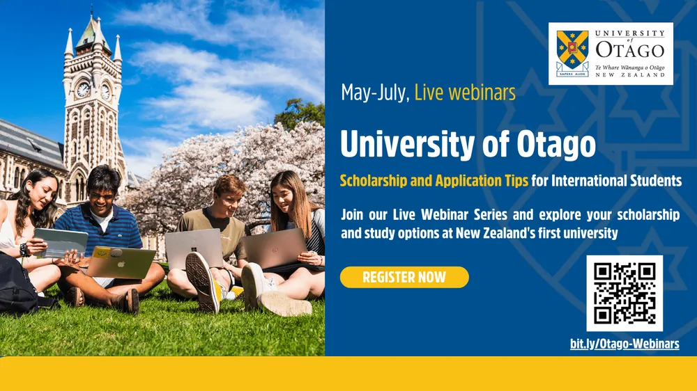 Để lắng nghe những chia sẻ về học bổng và cách ứng tuyển, cũng như tìm hiểu thêm về những lựa chọn học tập hàng đầu tại Otago, người học có thể đăng ký tham gia chuỗi webinar toàn cầu từ tháng 5 đến tháng 7 để trực tiếp trao đổi cùng đại diện Đại học Otago và các sinh viên, cựu sinh viên của trường. Đăng ký tại: bit.ly/Otago-Webinars.