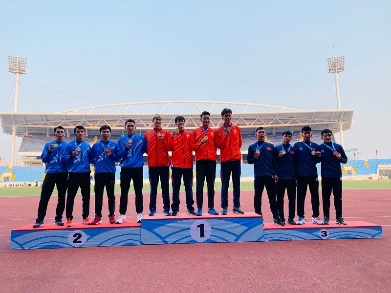 Ngần Ngọc Nghĩa. Ảnh: MINH CHIẾN Ngày tranh tài đầu tiên, điền kinh Công an Nhân dân có tấm HCV lịch sử cũng như Long An khi VĐV Ngần Ngọc Nghĩa về nhất nội dung 100m với thành tích 10”35. Đáng quý và đáng trân trọng ở kết quả này khi nó đã xô đổ cả kỷ lục quốc gia và kỷ lục Đại hội do VĐV này đang giữ. Kỷ lục quốc gia cũ là 10”40 được lập năm 2020 còn kỷ lục Đại hội là 10”47 được lập năm 2018. Ngay sau khi VĐV này về nhất giành thành tích, ban Giám đốc Trung tâm Huấn luyện và thi đấu TDTT Công an Nhân dân đã thưởng nóng động viên thành tích cho Ngần Ngọc Nghĩa. |