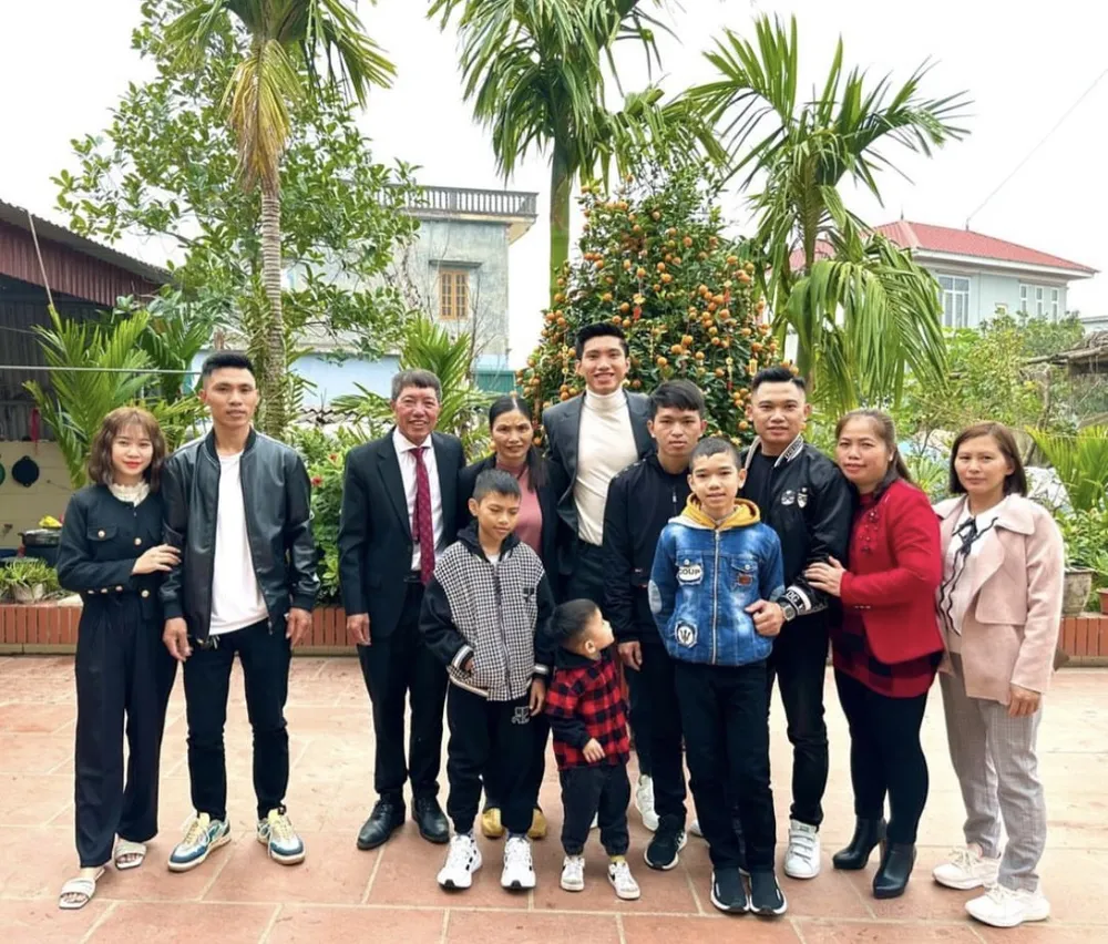 Đại gia đình của Đoàn Văn Hậu ở quê nhà Thái Bình. Ở mùa giải 2023, Văn Hậu sẽ khoác lên màu áo của đội tân binh V-League Công an Hà Nội.