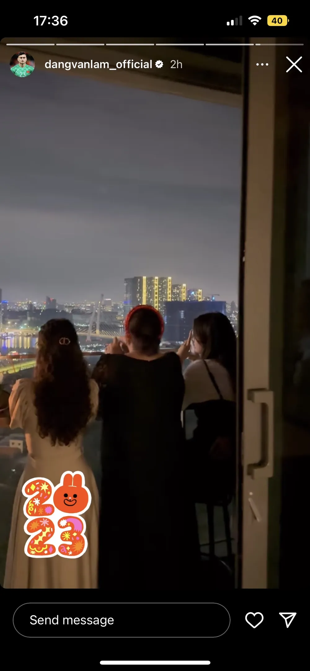Thủ môn Đặng Văn Lâm chia sẻ khoảnh khắc gia đình đón giao thừa, xem pháo hoa ở một căn hộ cao cấp tại TPHCM. Cả gia đình của Lâm “Tây” từ Nga đã trở về Việt Nam sinh sống.