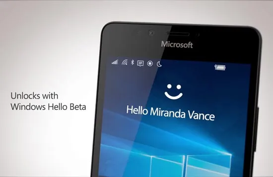Hỗ trợ Windows Hello Beta, Lumia 950 XL có cảm biến hồng ngoại để nhận dạng người dùng bằng mống mắt. Đây là một trong những công nghệ sinh trắc vượt trội nhất của Microsoft hiện nay. Trong các thử nghiệm khác nhau ở điều kiện thường, thiếu sáng, đeo kính râm, người hơi nghiêng so với máy, dịch chuyển nhẹ, máy vẫn có thể nhận dạng rất nhanh người dùng và cho đăng nhập. Trong một video giới thiệu của Microsoft, 2 cặp sinh đôi: chị em và anh em, cùng đăng nhập trên thiết bị của người anh/ chị song sinh của mình, máy vẫn nhận ra và từ chối đăng nhập. Windows Hello là một trong những tính năng an toàn tin cậy.