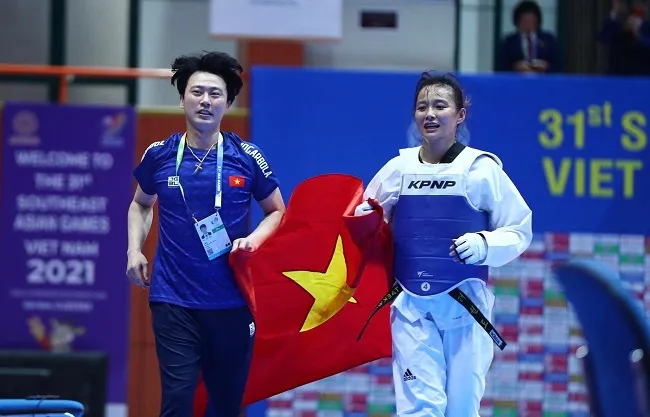 Một dấu ấn khác không thể không kể tới chính là chuyên gia Kim Kill Tae (Hàn Quốc) của đội tuyển taekwondo Việt Nam. Vị chuyên gia trẻ tuổi đã đi sát cùng các cô gái đối kháng của taekwondo Việt Nam từ tập luyện trong nước cho tới tập huấn Hàn Quốc và cùng ban huấn luyện tạo thành tích không nhỏ ở SEA Games 31.
