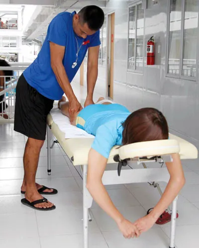 Thiếu bác sĩ, nhiều HLV phải xoa bóp giúp VĐV hồi phục. Ảnh: Nhã Uyên
