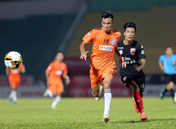Đà Nẵng (trái) tiếp tục nhấn chìm chủ nhà Long An trong chuỗi 7 trận thua. Ảnh: Dũng Phương