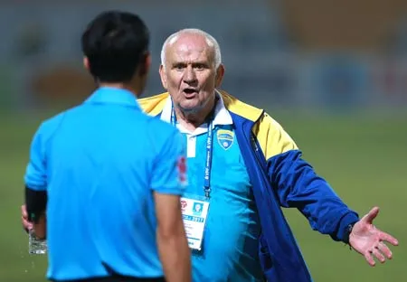 HLV Petrovic phản đối quyết định của trọng tài Ảnh: Minh Hoàng