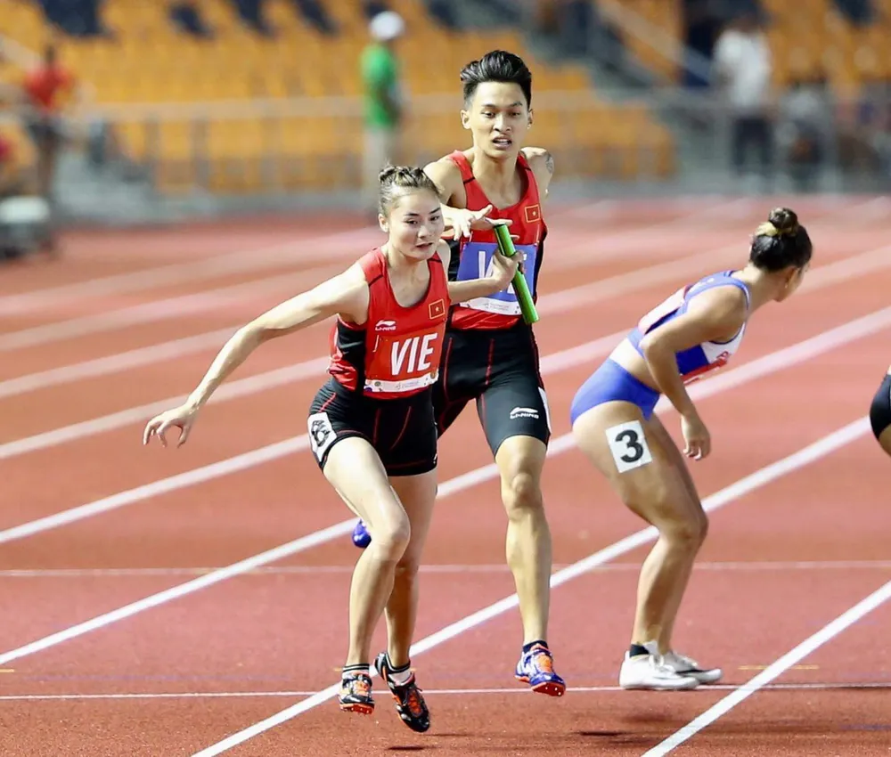 Đây là nội dung mới so với kỳ Đại hội trước. Với việc sở hữu hàng loạt VĐV chạy cự ly trung bình tốt, Việt Nam đã chứng tỏ ưu thế rõ rệt, bỏ xa hai đội đứng sau là Thái Lan (3’26’’09) và Philippines (3’26’’95). Tuy nhiên ở các phần thi cá nhân, Việt Nam không thể có được tấm HCV nào.