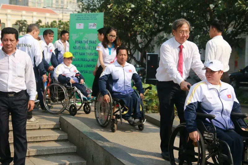 Phát biểu tại lễ xuất quân, ông Nguyễn Ngọc Anh, Vụ trưởng Vụ Thể dục thể thao quần chúng, Trưởng đoàn thể thao người khuyết tật Việt Nam tại Para Games 9, cho biết: “Các VĐV người khuyết tật Việt Nam dự Para Games 9 đã trải qua quá trình tập huấn tại Trung tâm HLTTQG Hà Nội và TPHCM. Đây là những gương mặt tiêu biểu của thể thao người khuyết tật Việt Nam được Tổng cục Thể dục thể thao cũng như ban huấn luyện các đội tuyển theo dõi và rà soát kỹ lưỡng trong thời gian dài”.