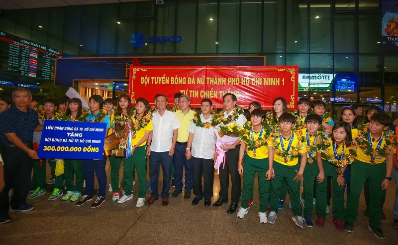 Lãnh đạo Sở VH-TT, LĐBĐ TPHCM, Trung tâm TDTT Q1 đã ra sân bay đón đội