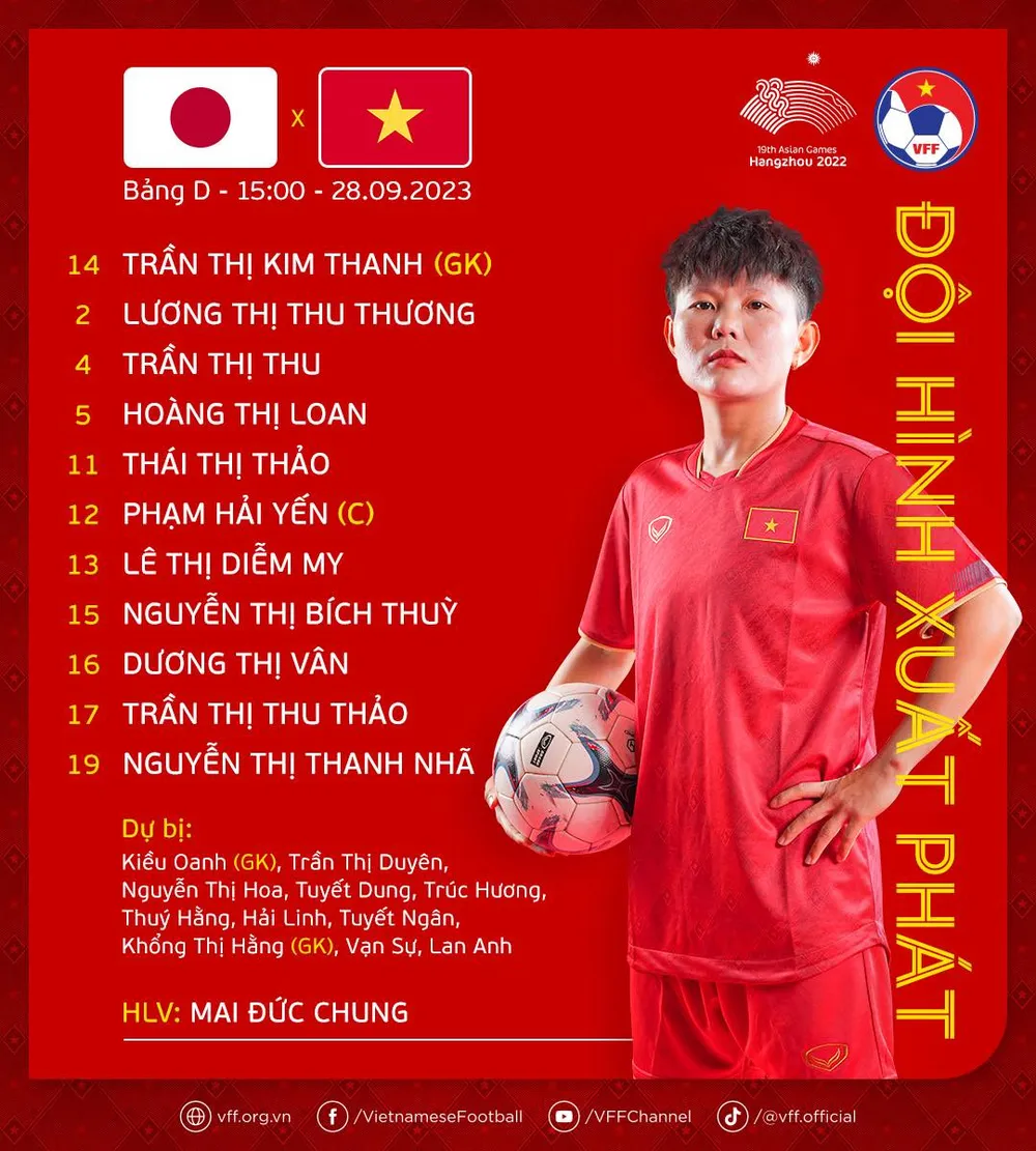 Trong trường hợp thua đội tuyển nữ Nhật Bản, các cô gái Việt Nam chỉ còn 3 điểm để so sánh với đội đứng nhì của các bảng khác. Khi ấy, thầy trò HLV Mai Đức Chung sẽ phải nhìn vào kết quả các bảng mới biết có giành quyền đi tiếp hay không.