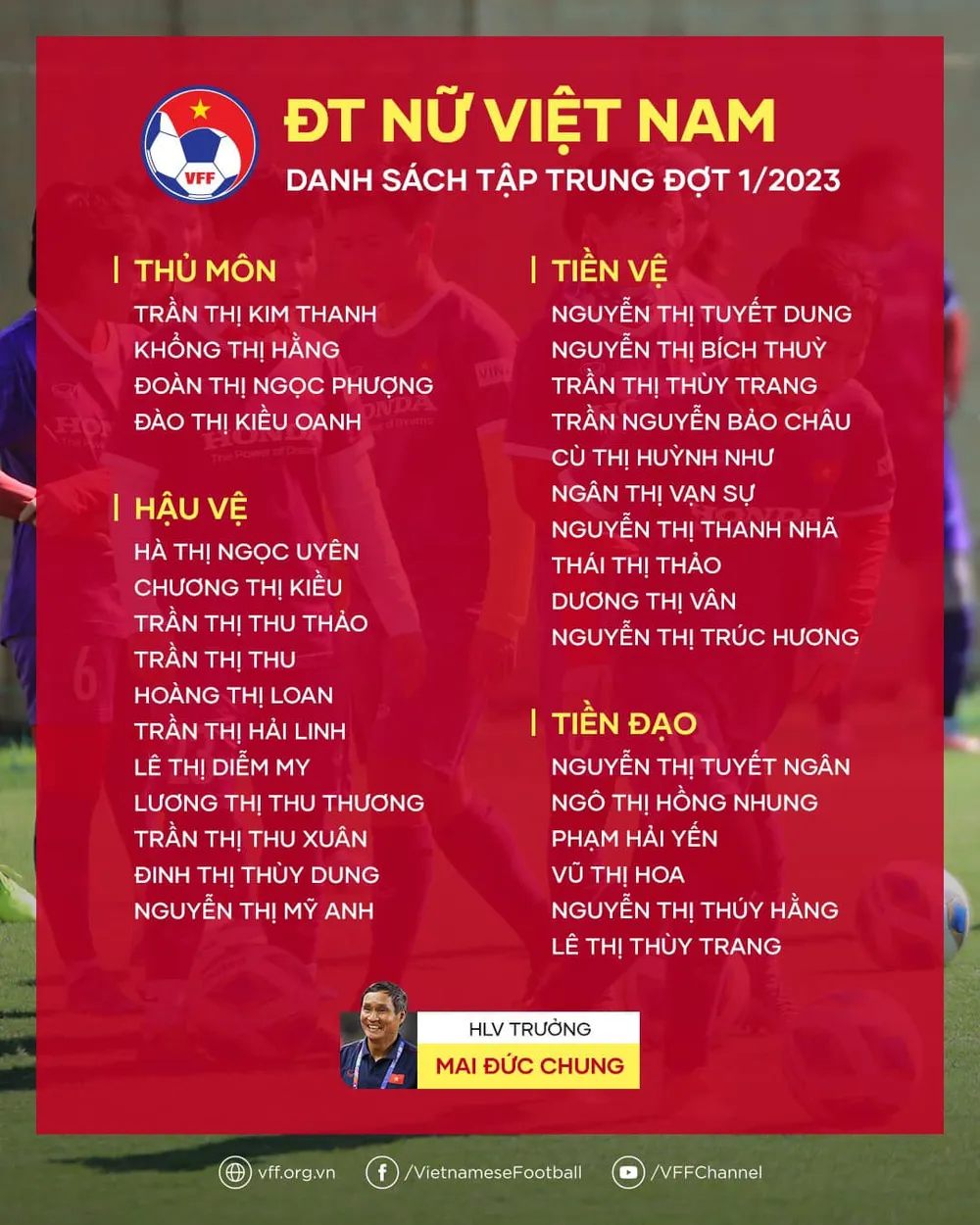 Ở danh sách tập trung vào tháng 3, ĐKVĐ Quốc gia TPHCM I vẫn chiếm số đông với 11 cầu thủ. Tiếp đến là Hà Nội và Than KSVN có cùng 8 cầu thủ. Hà Nam và Thái Nguyên – mỗi địa phương 2 cầu thủ. Danh sách này HLV Mai Đức Chung gọi đủ các gương mặt vừa tham dự SEA Games 31 và AFF Cup nữ 2022. Bên cạnh đó là có 2 sự vắng mặt đáng chú ý.