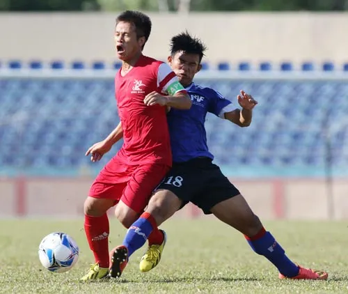 PVF rút lui, có phương án đưa Bình Định (trái) lên chơi hạng Nhất. Ảnh: Phi Hải