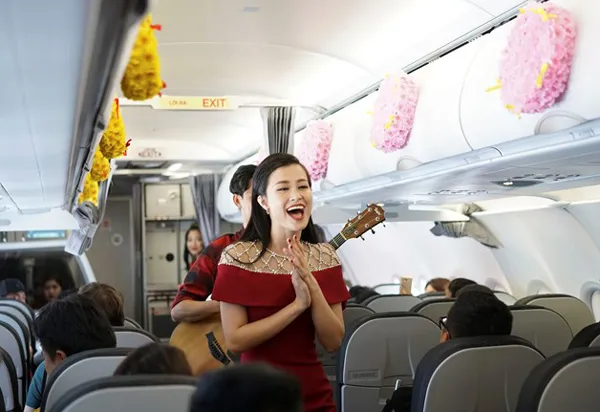 Vào chiều 2-1, nữ ca sĩ trình bày ca khúc Khai xuân đón lộc dành tặng hành khách. Tuy chỉ biểu diễn trong vài phút ngắn ngủi nhưng nữ ca sĩ đã tạo nên bầu không khí sôi động và đem đến cảm giác thích thú cho mọi người khi liên tục nhún nhảy cùng những vũ điệu đáng yêu. Thậm chí, cô còn bước xuống từng hàng ghế để giao lưu khán giả.