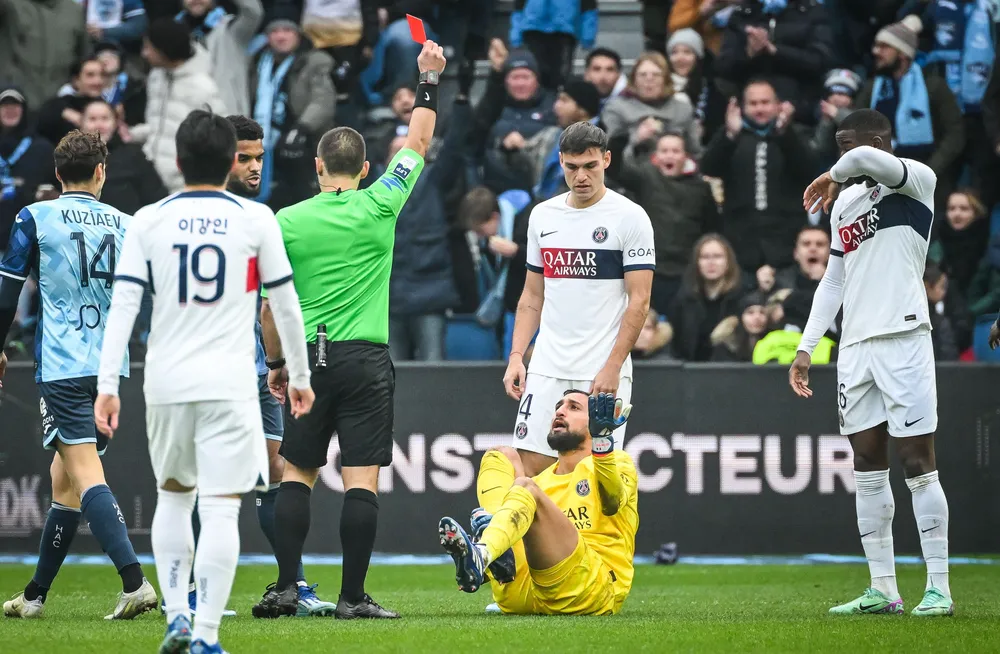 Chần chừ trong quyết định dâng lên hay thủ thế, Donnarumma khiến cả hàng thủ PSG để lọt một chân sút Le Havre băng lên phá bẫy việt vị. Với nỗ lực sửa sai, thủ thành người Italia lao lên vung chân phá bóng nhưng... hụt, khiến động tác này trở thành cú đạp thẳng mặt đối phương. Trọng tài lập tức rút thẻ đỏ trực tiếp đối với số 99 của PSG. Sau đó, Bradley Barcola đã phải "hy sinh" rời sân ngay phút thứ 10 nhường chỗ cho thủ môn dự bị Arnau Tenas.