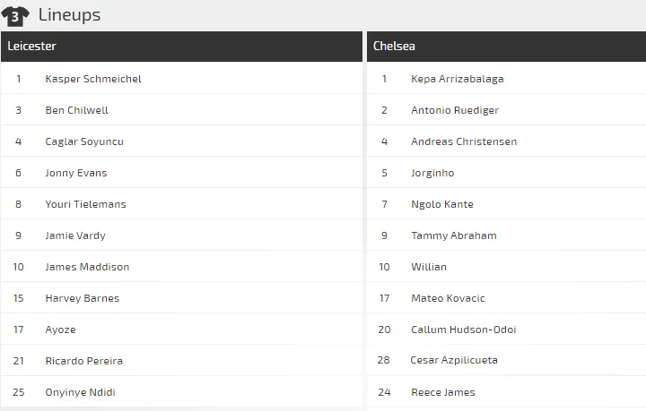 Tiền đạo Leicester Jamie Vardy sẽ trở lại đội hình chính sau khi vào sân 35 phút cuối trận thua Aston Villa. Song nhân vật đáng mong chờ nhất là tiền đạo Chelsea Tammy Abraham vốn đang theo dõi tiến trình hồi phục chấn thương mắt cá.