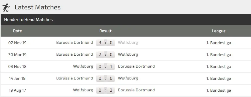 Tay săn bàn hàng đầu Weghorst đã ghi 11 bàn cho Wolfsburg, nhưng chưa tung lưới lần nào trong 3 lần thảm bại trước Dortmund ở Bundesliga. Lịch sử đối đầu còn ghi nhận nhiều hơn thế khi Dortmund thắng cả 4 trận gần nhất ở Wolfsburg. Nhưng Wolfsburg có niềm tin vào lịch sử, bởi họ chưa bao giờ thua liên tiếp 5 trận trước bất kỳ đội nào ở Bundesliga.