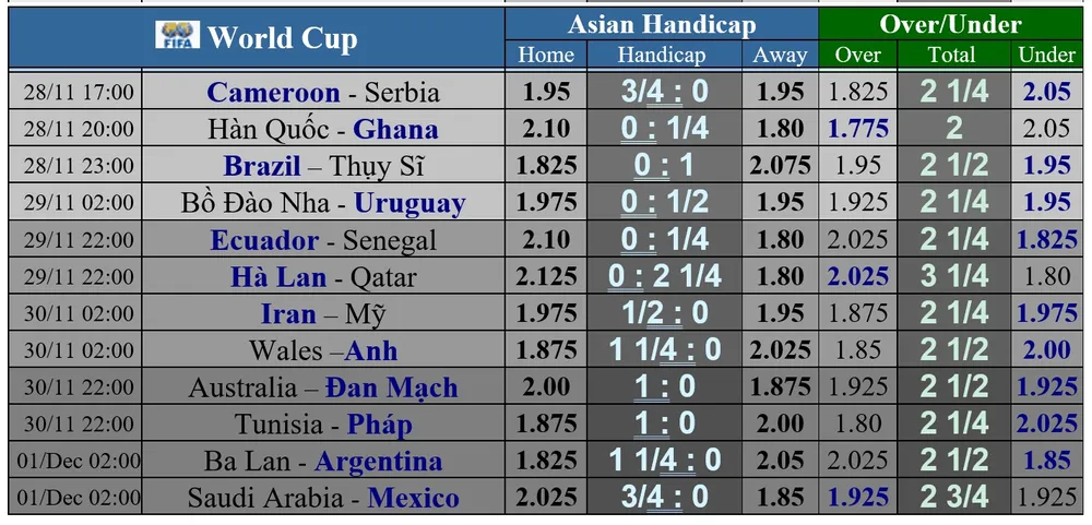 Hàn Quốc gây ấn tượng với trận hòa Uruguay trong trận ra quân nhưng mức kèo Hàn Quốc chấp Ghana đồng nửa và cửa dưới ăn 8 thực tế chẳng khác gì kèo đồng banh. Giới thạo tin cho rằng nhà cái cố tình đánh lệch kèo để khuyến khích dân cược đặt cửa dưới. Dù sao, chúng tôi vẫn tin vào Hàn Quốc.