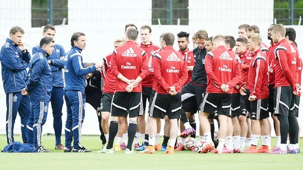 Các cầu thủ Hamburg trong một buổi tập đằng sau những cánh cửa đóng kín.