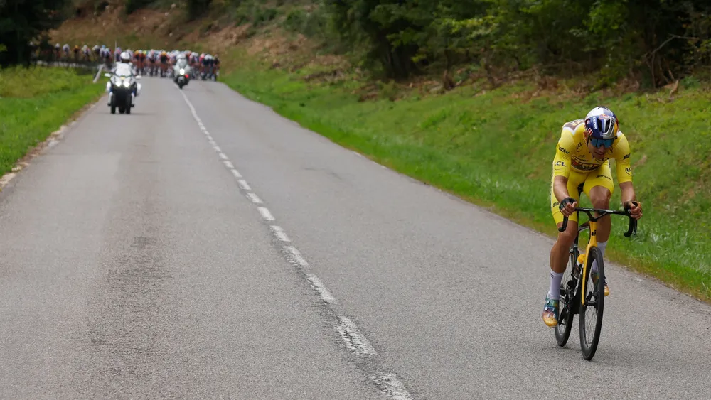 Nhưng chuyện gì đến cũng đã đến, Wout van Aert đã bị bắt lại khi chỉ còn cách đích 11km, khi bước vào hai ngọn đèo cuối. Anh đuối sức đến nổi không theo được nhóm này và dần tuột sâu ở phía sau. Trong tình thế này, đội Jumbo-Visma buộc phải bỏ lại áo vàng để lo cho Jonas Vingegaard, người đang đứng thứ 7 tổng sắp sau 5 chặng.