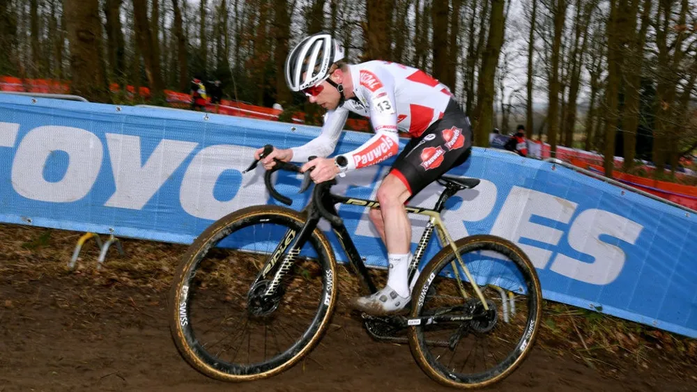 Sau đó, Pidcock ngay lập tức tấn công muốn một mình bức phá. Sức ép của anh khiến Lars van der Haar va vào một cầu thủ chạy bên phải trong nỗ lực rượt đuổi, tạo nên tai nạn dính chùm làm cho Hermans, Corné van Kessel (Intermarché–Wanty–Gobert Matériaux) và Iserbyt ngã theo. Pidcock tránh được không ngã nhưng bị Michael Vanthourenhout bỏ lại 8 giây.