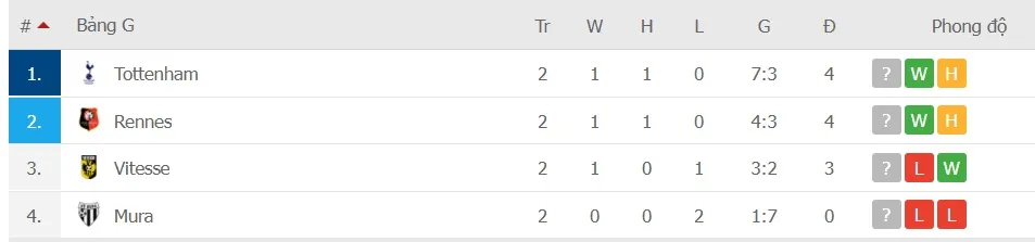 Đội bóng của Premier League hiện đang đứng đầu bảng G trong Europa Conference League, đã thắng một trận trước Mura gần đây nhất và hòa trận còn lại với đội ứng viên nhất bảng Rennes.