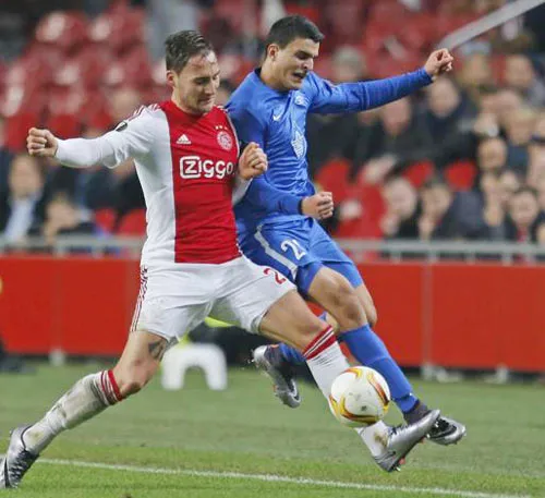 Tiền vệ Nemanja Gudelj (trái, Ajax) tranh bóng quyết liệt với Mohamed Elyounoussi của Molde (Ảnh: AP)