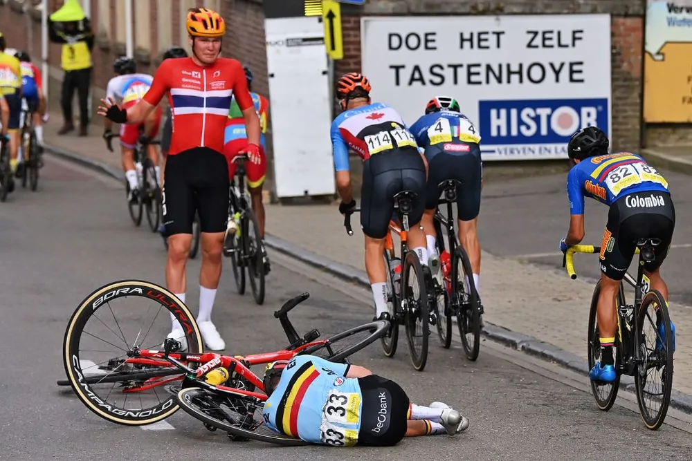Nhưng khi vừa giở cờ đã có hàng loạt vụ tấn công nổ ra và bộ ba Gleb Karpenko (Estonia), Logan Currie (New Zealand) và Adam Ward (Ireland) sớm thoát đi. Một số vụ tai nạn khác tiếp tục xảy ra rải rác khiến đoàn đua bị xáo trộn, trong đó Bỉ bị ảnh hưởng nặng nề nhất với chấn thương của hai tay đua chủ lực Fabio Van Den Bossche và Stan Van Tricht.